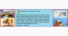 2024-2025 Eğitim öğretim sezonunun başlaması ile mağdur ve muhtaç aileler üzerinde yaptığımız ihtiyaç tespiti sonucunda ortaya çıkan Kırtasiye Malzemesi, Kahvaltılık ürün, Gıda ve Temizlik malzemesi ile muhtelif ihtiyaçların karşılanması noktasında